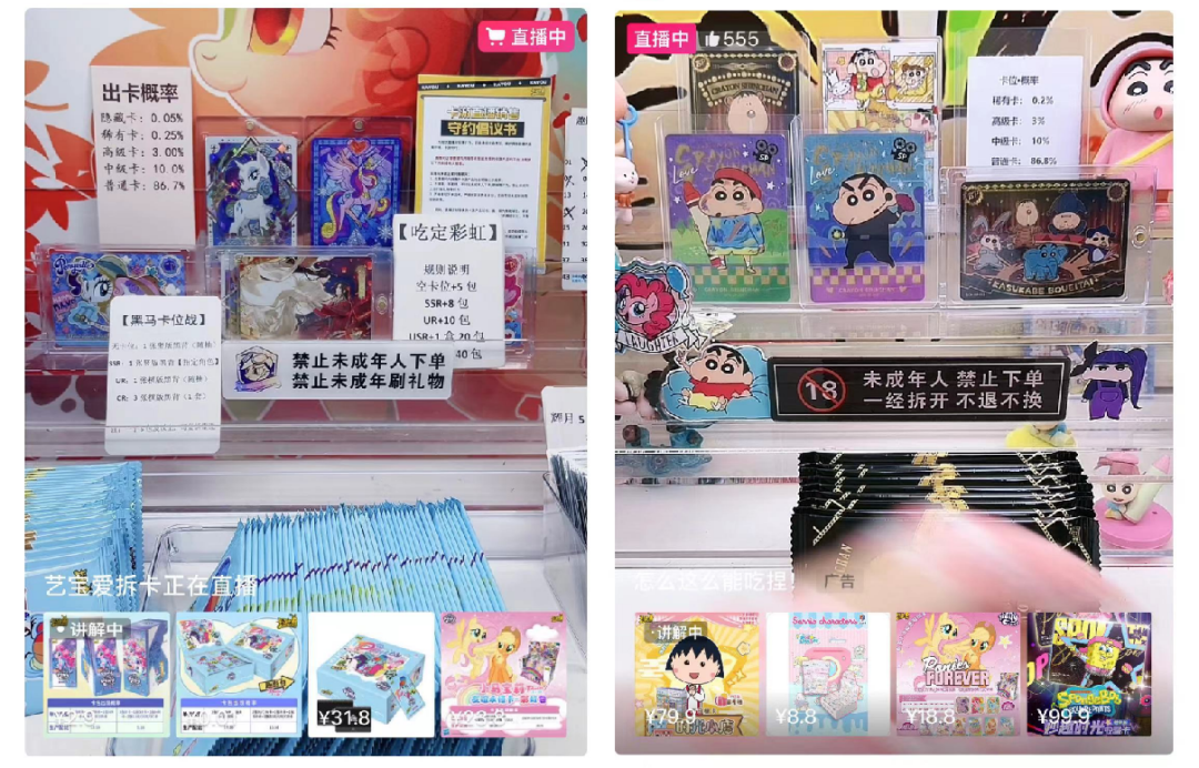拆盲盒直播间的“上头”属性,也让一部分消费者出现了“过度消费”的行为,其中又尤其以年龄较小的消费者为甚,因此大部分直播间都会加上“禁止未成年人下单”的牌子。