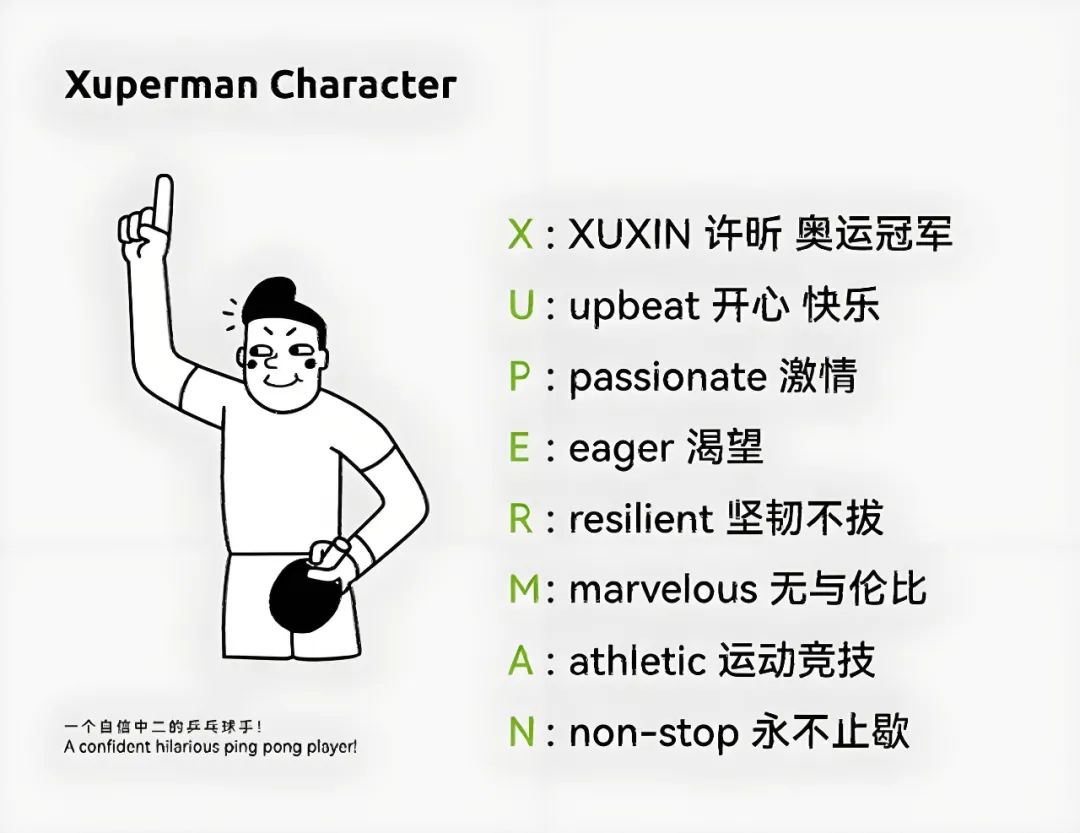 点评:可以说,许昕的个人运动品牌处处可见本人的特色。首先,是它极具个人特色的背后接球动作,该姿势既是其品牌logo,同时也用到了品牌周边产品的设计中,辨识度极高。其次,品牌名Xuperman也与许昕的姓有所结合,同时也是全球乒乓球迷对许昕的昵称。值得一提的是,在奥运赛事期间,品牌直播间还以许昕直播观赛的亮点吸引消费者,通过各种极具喜剧人的观看体验再度展现了许昕有趣的性格。总的来说,一系列反严肃常规的做法都精准踩到了当下年轻人的G点上了。
