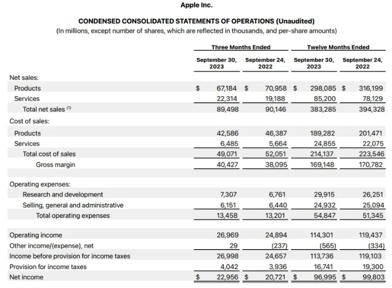 苹果公司2023自然年第三季度业绩|数据来源:苹果官网