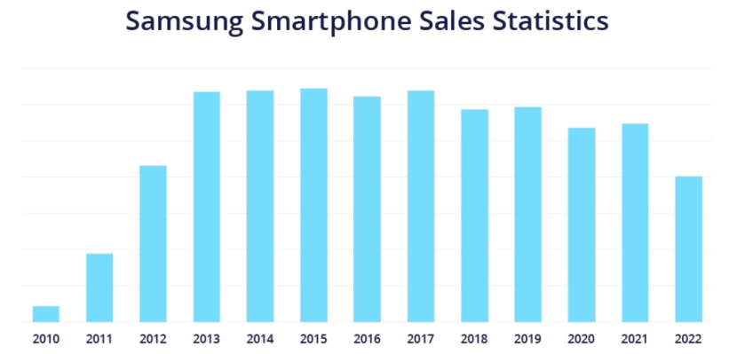 三星智能手机销售统计|数据来源:tridenstechnology