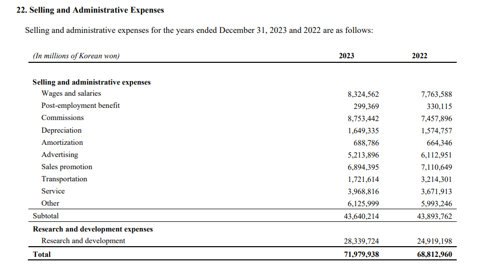 三星2023年销售和管理费用及研发费用|数据来源:三星官网