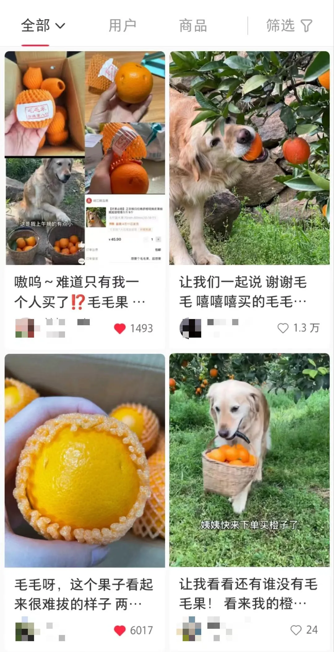 这么乖的狗狗,非常惹人喜爱。店家也以此为卖点,卖毛毛摘的橙子——“毛毛果”。