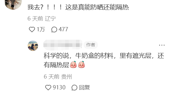 甚至连奶盒爆改帽子也是今年6月份仲夏时节就火过一次,然后时隔三个月再度成为了热点。这也显示出环保和废物利用一直是公众的基本共识。