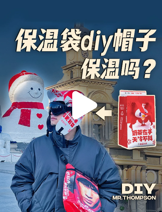 去年,就有博主将蜜雪冰城奶茶袋改成护耳冬帽的。