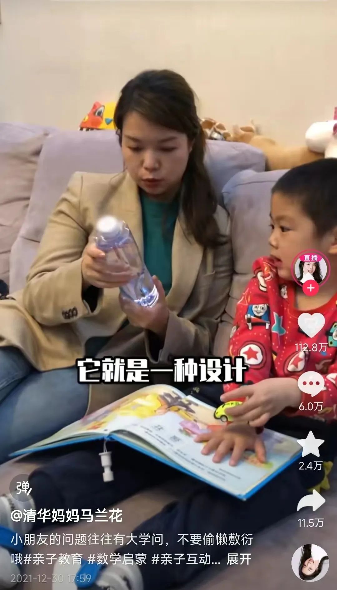这个转变来自于偶然的分享,2020年,她在抖音@清华妈妈马兰花 发布了一系列日常育儿视频,其独特的育儿观让她很快收获了百万粉丝,她开始重新考虑自己的职业规划。