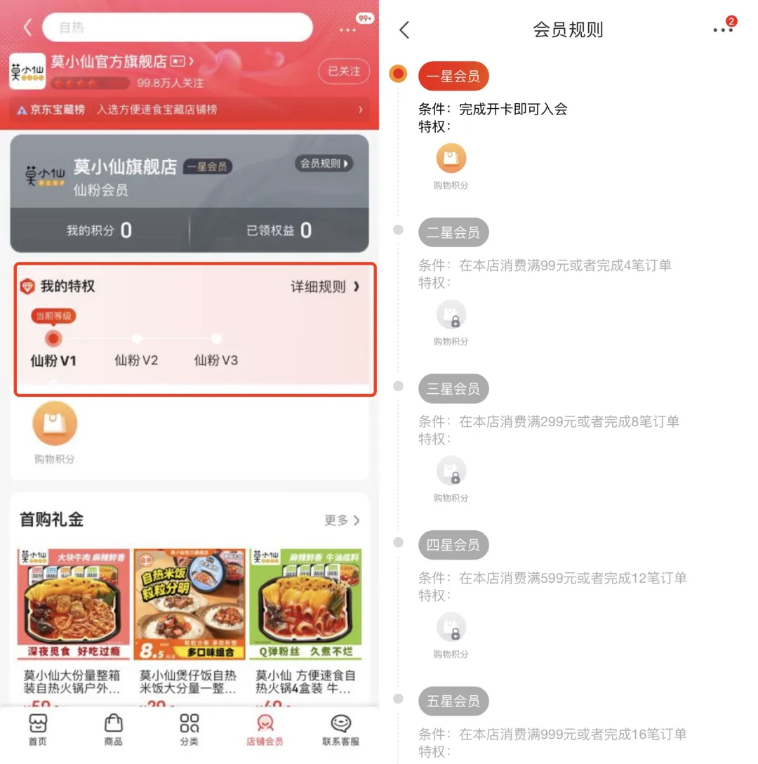 但在本期品牌宠粉表现中,莫小仙也有一些可取之处。例如,在京东平台设置了会员特权,积累购物积分,可获取相应权益。作为品牌的会员,消费者在享受专属权益的同时,也会感受到一种归属感。而对于品牌来说,通过购物积分系统,能够激励消费者重复购买,属实是一种双赢的策略。
