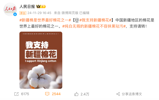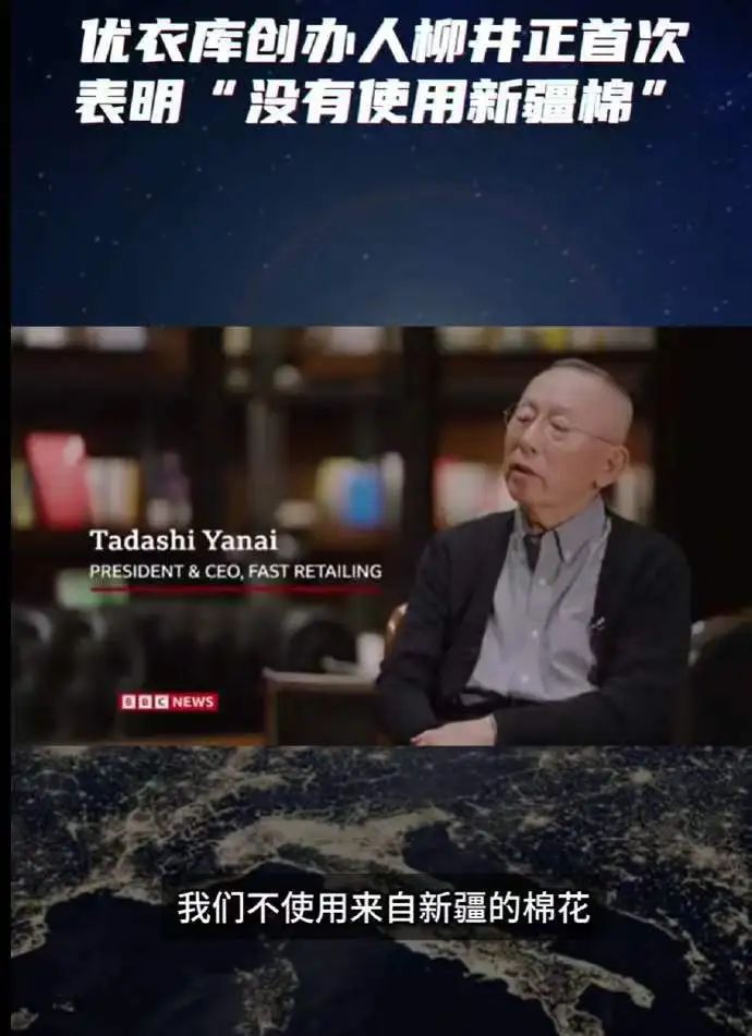 在昨天(11月28日),在接受BBC采访时,优衣库创始人柳井正说:“没有使用新疆棉”。