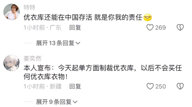 网友5:我也表态:这一生绝不碰优衣库,直接拉黑它