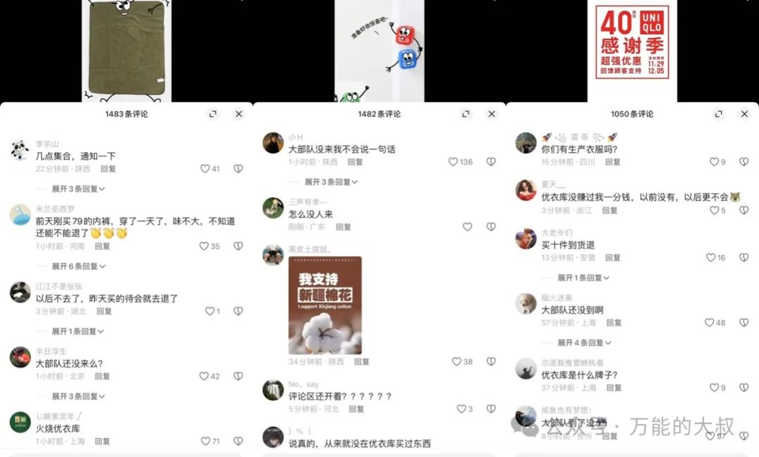 网友12:本人宣布:今天起单方面制裁优衣库,以后不会买任何优衣库衣物!