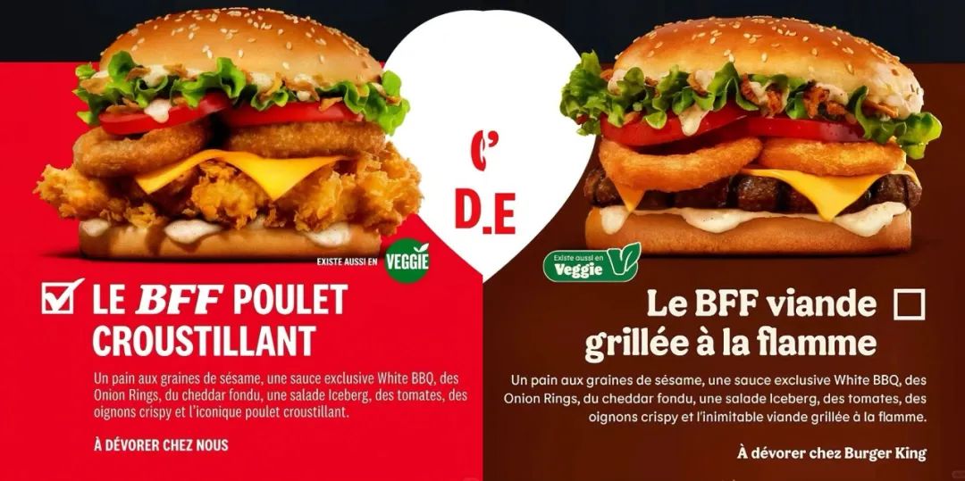 这不,法国汉堡王和肯德基两个老冤家最近就来了个世纪大和解,通过联名上演一出兄弟情深的戏码。