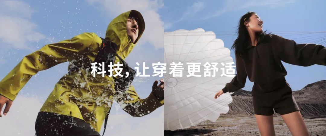 比如近期发布的2024秋冬新款冲锋衣系列,采用了“特氟龙三防”技术,在面料表层构筑分子屏障,以实现更好的防水、防油污效果。“绒燚系列”则使用远红外蓄热技术,靠吸收并转化短波能量来改善保暖效果,并内置导电丝,解决静电问题。