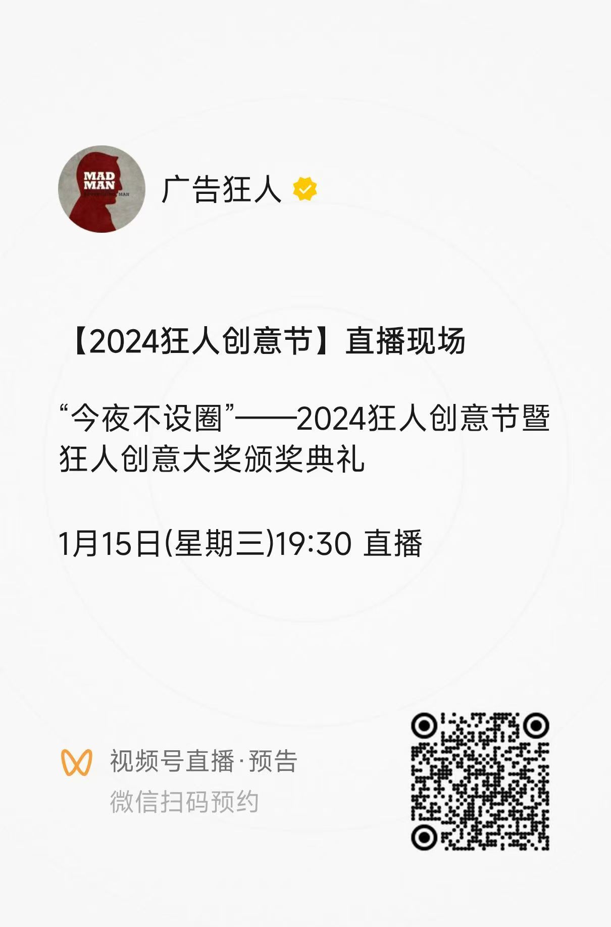 狂人创意节由此出发,打破所谓“广告人的创意节”,让更多创意形式和创意人参与其中。创意不再只是一句文案、一张海报、一部短片,还可以是一个成功的危机公关、一次有趣的social互动、一场出圈的IP联名…