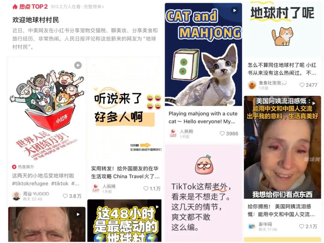 大批外国用户涌入小红书,让平台迎来了历史性的流量高峰。从#tiktokrefugee到#cattax(猫税),这些话题迅速点燃了用户热情,仅几天时间就创造了数亿次的阅读量。外国博主们通过颜值、宠物、才艺,甚至一口蹩脚的中文轻松收获大量关注。颜值即流量的真理再次被验证——一些高颜值的博主,仅凭简单的自拍或对着镜头说几句中文,就轻松涨粉数万。