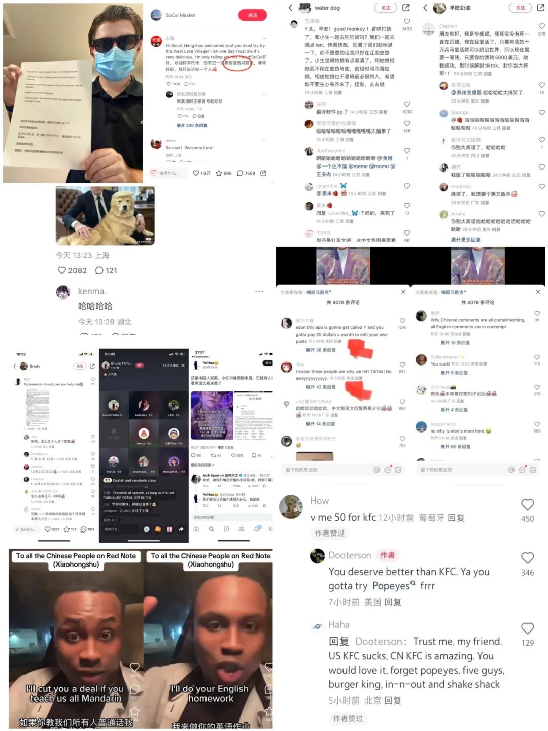 外国用户的涌入为小红书带来了内容生态的多样化。他们的加入不仅丰富了平台的内容类型,还创造了前所未有的跨文化交流场景。从外国博主尝试学习中文,到中国网友用火星文和梗文化与之互动,这些有趣的社交现象让人感受到中外文化的碰撞与融合。