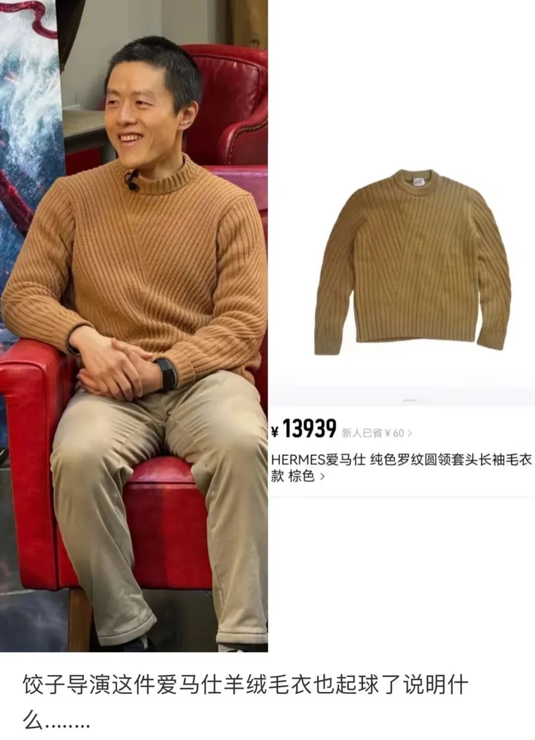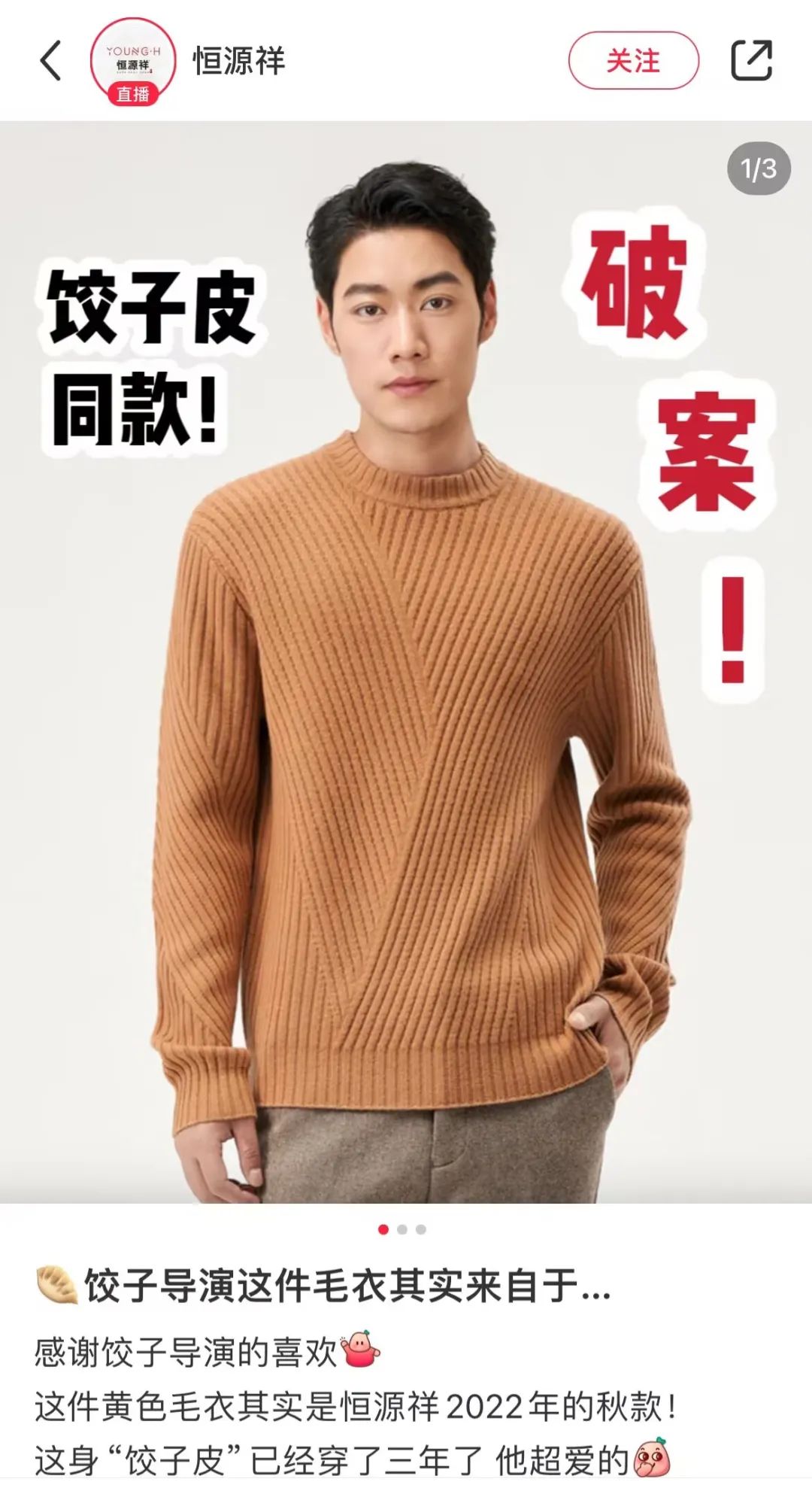 随后,恒源祥品牌也出来认领,称饺子导演的同款其实是品牌2022年推出的秋款毛衣。