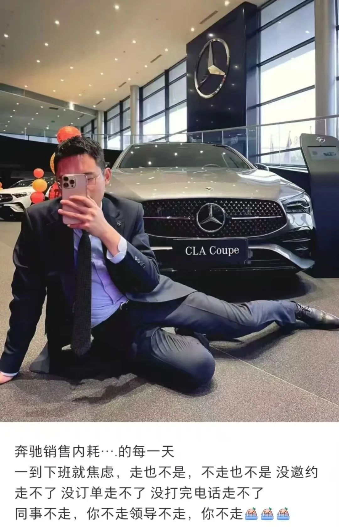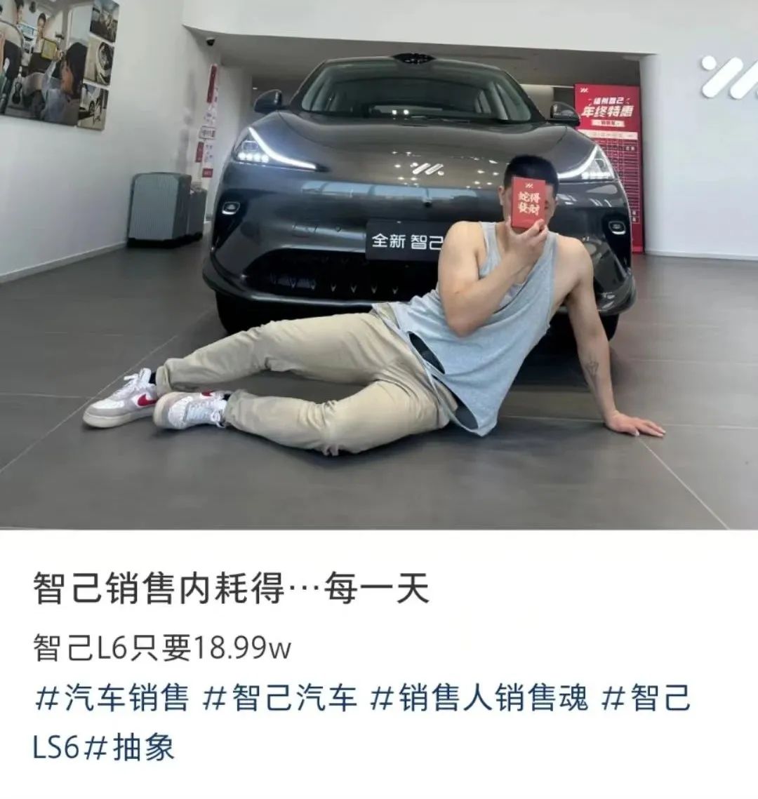 为了凸显这种帖子传递出男销售柔弱感,文案必须要凸显自己的破碎感,来激发消费者的保护欲……………………比如:智己销售内耗的…每一天