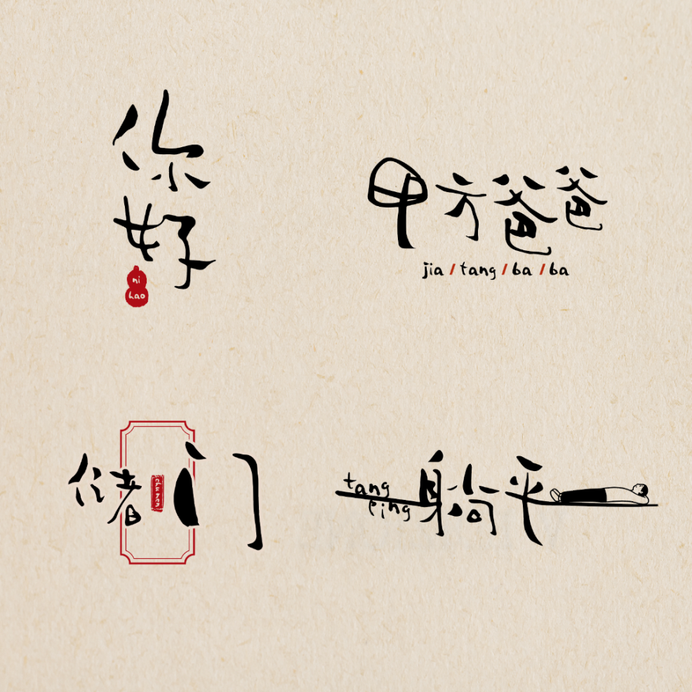 谁承想这种“起笔像打哈欠,收尾似伸懒腰”的字体,竟也暗合了传统书法的上紧下松,左敛右伸,内聚外展、点画呼应、黄金分割的基本规则,只不过看上去更“丧”更“慵懒”了。