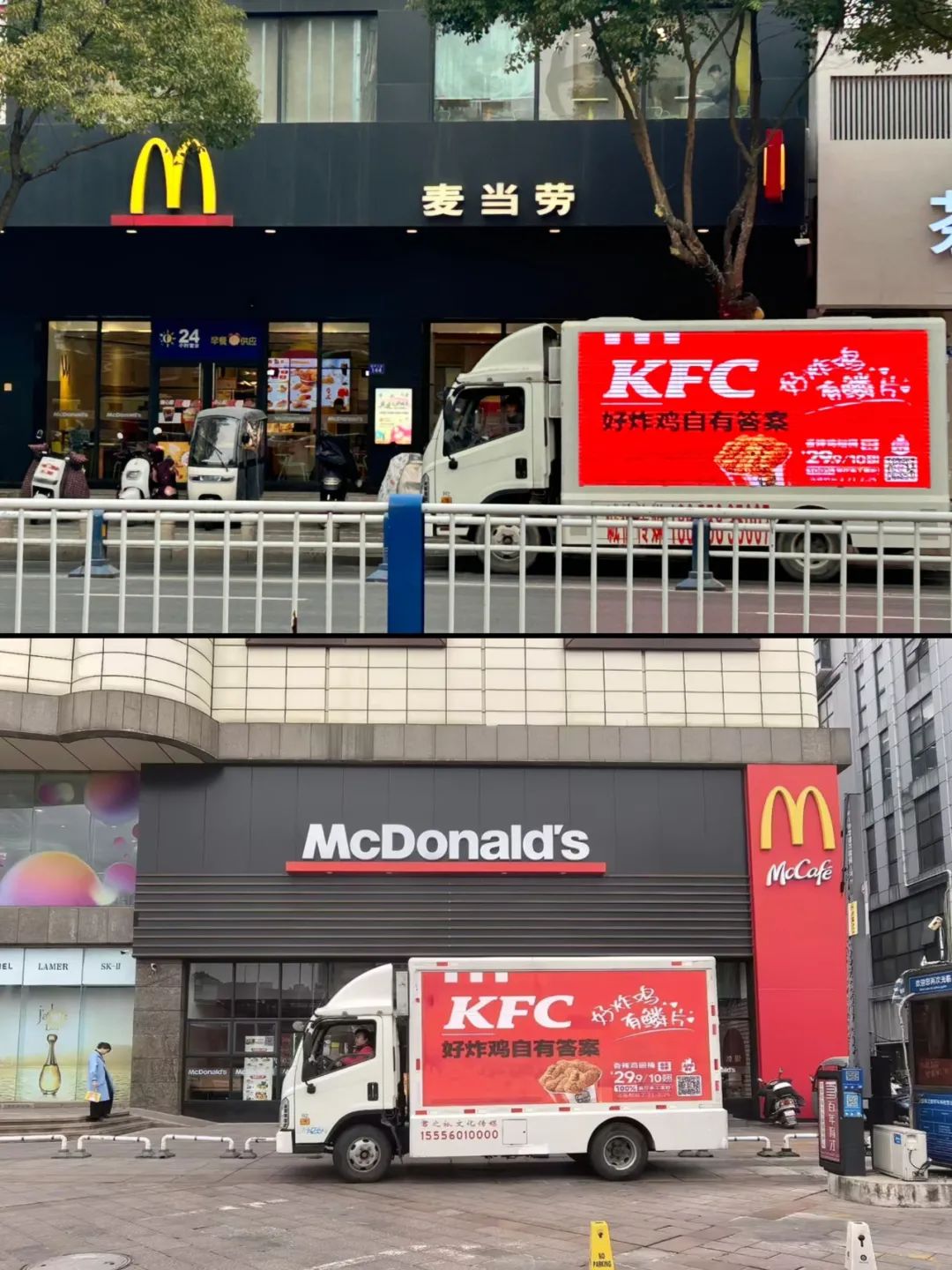 此外还有 肯德基的卡车巡游 怼脸攻击多家麦当劳门店。