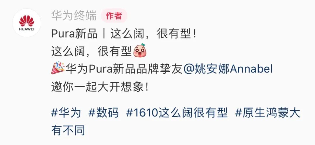 值得关注的是,华为此次只是官宣姚安娜为华为新品的 “品牌挚友”