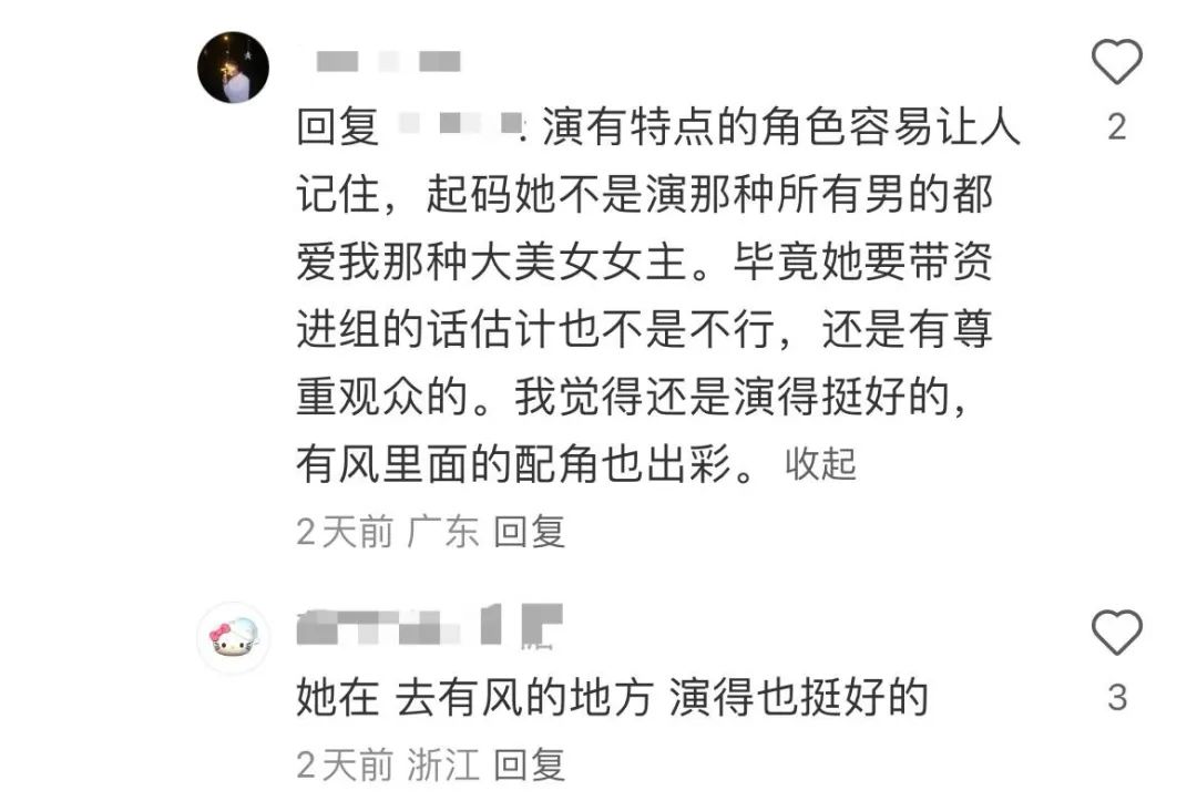 有人对她在近期播出影视作品中的演技表现给予了肯定。