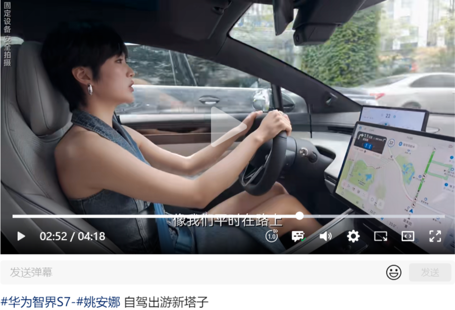 除此之外,姚安娜还曾为华为智行智界S7拍摄宣传片。