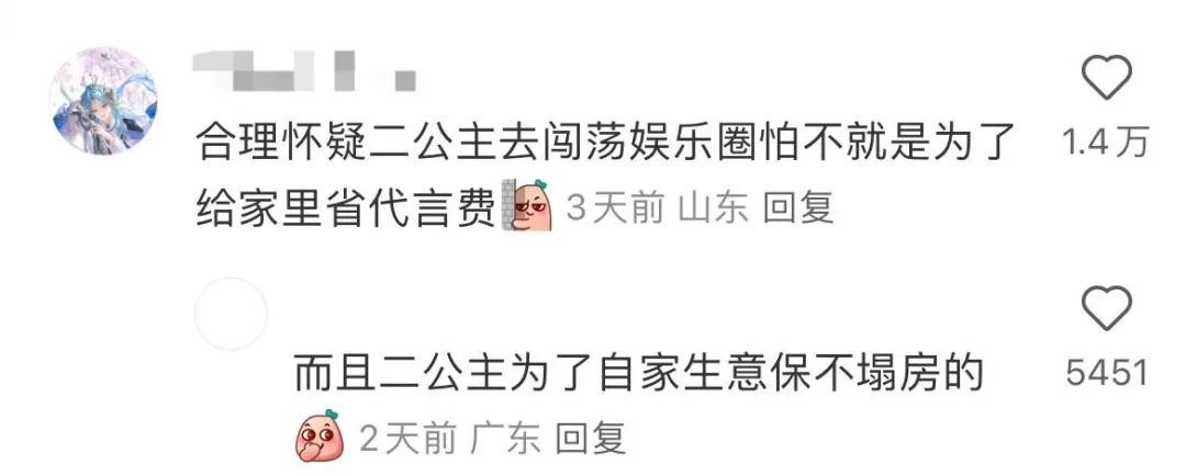 网友辣评: 合理怀疑二公主去闯荡娱乐圈就是为了给家里省代言费 。