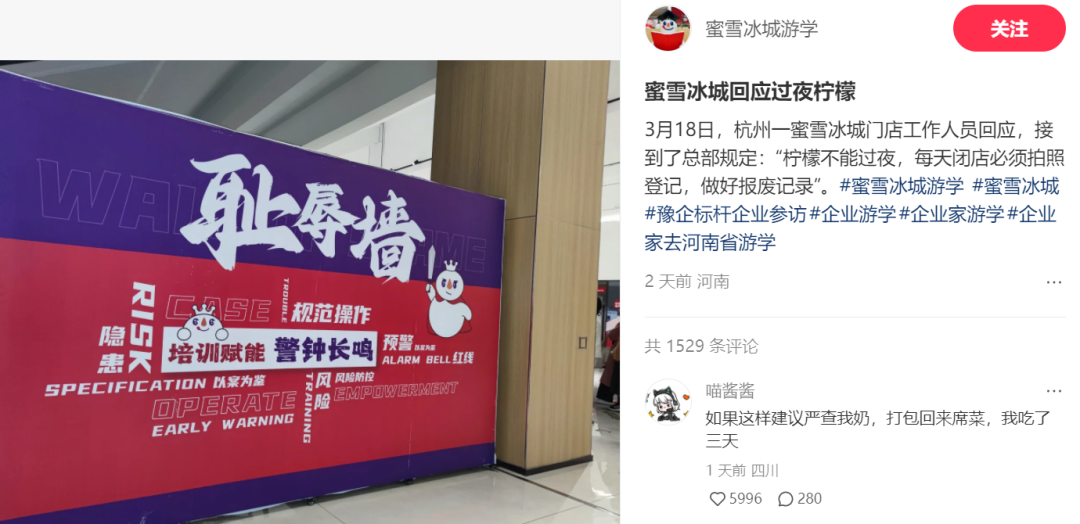 不得不说,蜜雪冰城这次的翻车还真的闹得挺大的,相信品牌也有了危机感。