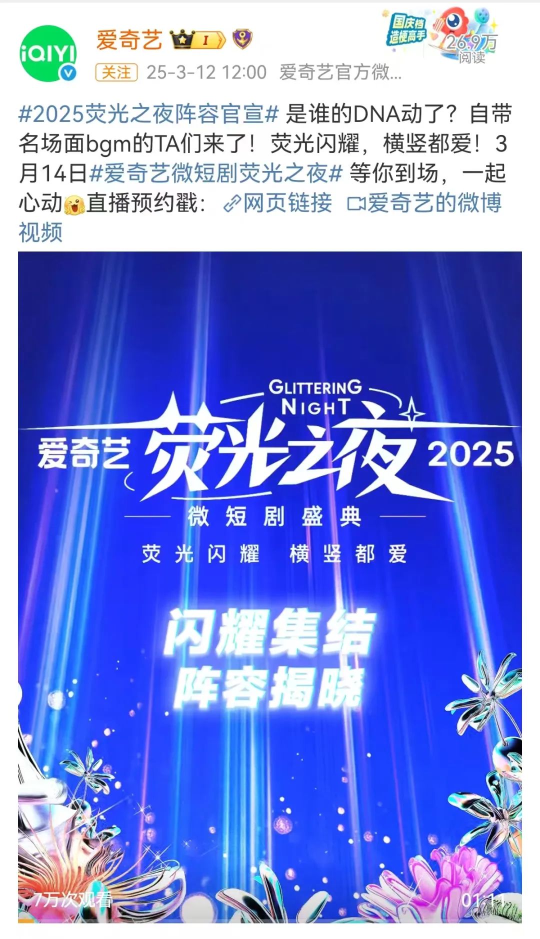 3月14日,以「荧光闪耀 横竖都爱」为主题的爱奇艺荧光之夜——2025微短剧盛典于苏州举行。爱奇龚宇表示,「构建长+短的内容生态是爱奇艺坚定的发展战略,无论长短,希望观众都能够在爱奇艺看到喜欢的内容。」
