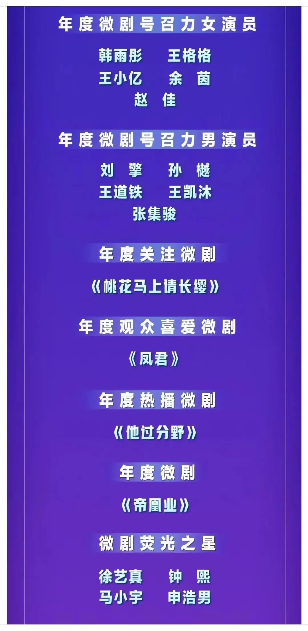 三是从制作机构和人才培养角度来看,长视频平台布局微短剧意义深远。在爱奇艺的微短剧盛典上,短剧单元颁发年度突破短剧、年度优秀短剧、年度人气短剧、年度短剧潜力演员、年度短剧进取演员等16个短剧荣誉;微剧单元揭晓年度优秀微剧、年度创新微剧、年度微剧进取演员、年度微剧关注演员、年度微剧荧屏搭档等18项荣誉。众多获奖的制作机构与演员,无疑将会成为未来转型投入长视频影视剧制作的宝贵资源,为长视频平台储备丰富的创作力量。
