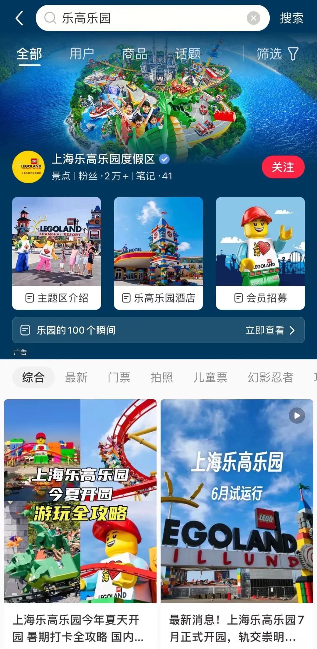 目前,在社媒平台上搜索乐高乐园,已经能够看到官方运营提供了较为完整的宣传通道。