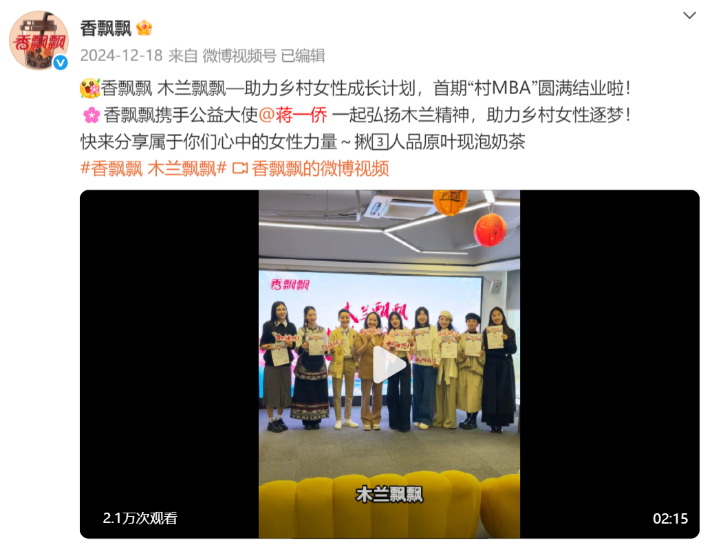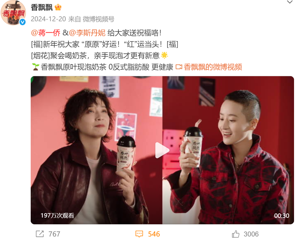 此外,还为香飘飘旗下产品拍摄宣传短视频。