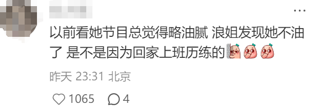以前看她觉得略油腻,现在不油了,是不是回家上班历练的?
