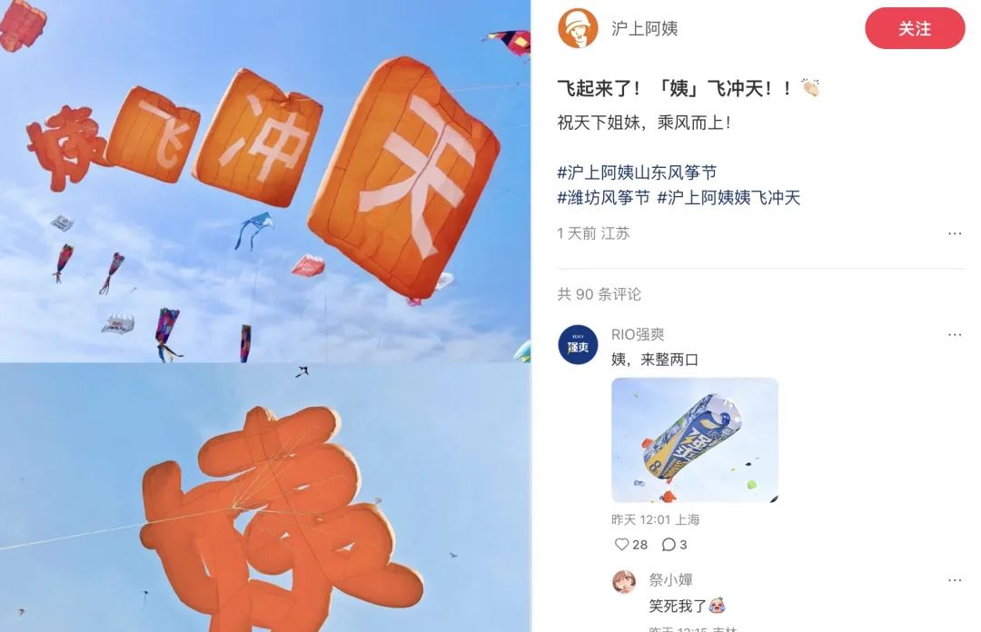 相比过去的硬广传播,各大品牌钟爱潍坊风筝节,是对热门事件进行解构与再创作,迎合了当下人们的生活娱乐精神,希望通过「万物皆可上天」的荒诞感引发全民围观与二次传播。
