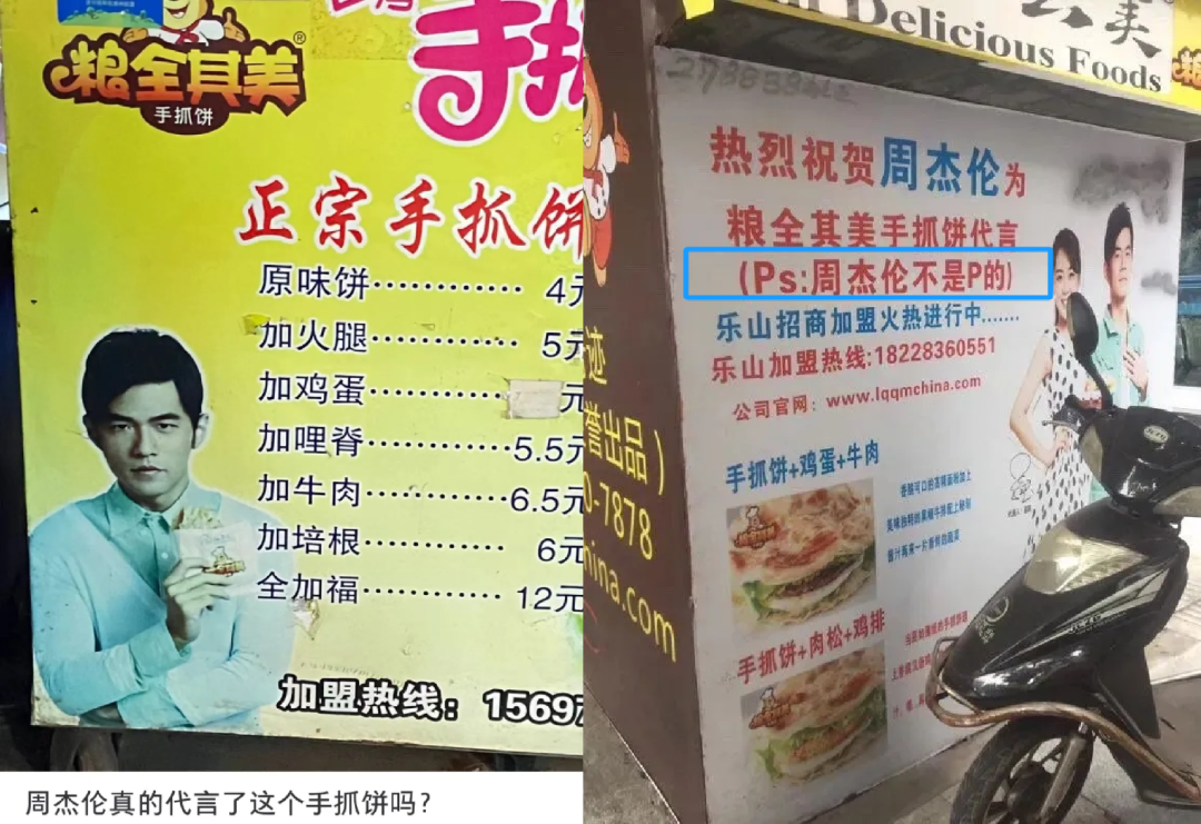 其中“粮全其美手抓饼”因过于接地气,还被质疑过是不是真的,品牌方不得不注明“周杰伦不是P的”。