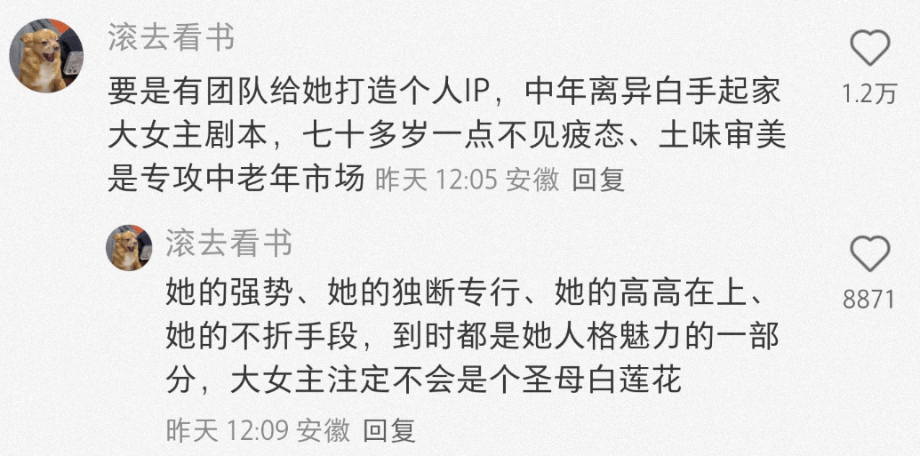而同样是中老年的审美需求,董明珠给到的不过是更符合底层大众,土味了点。