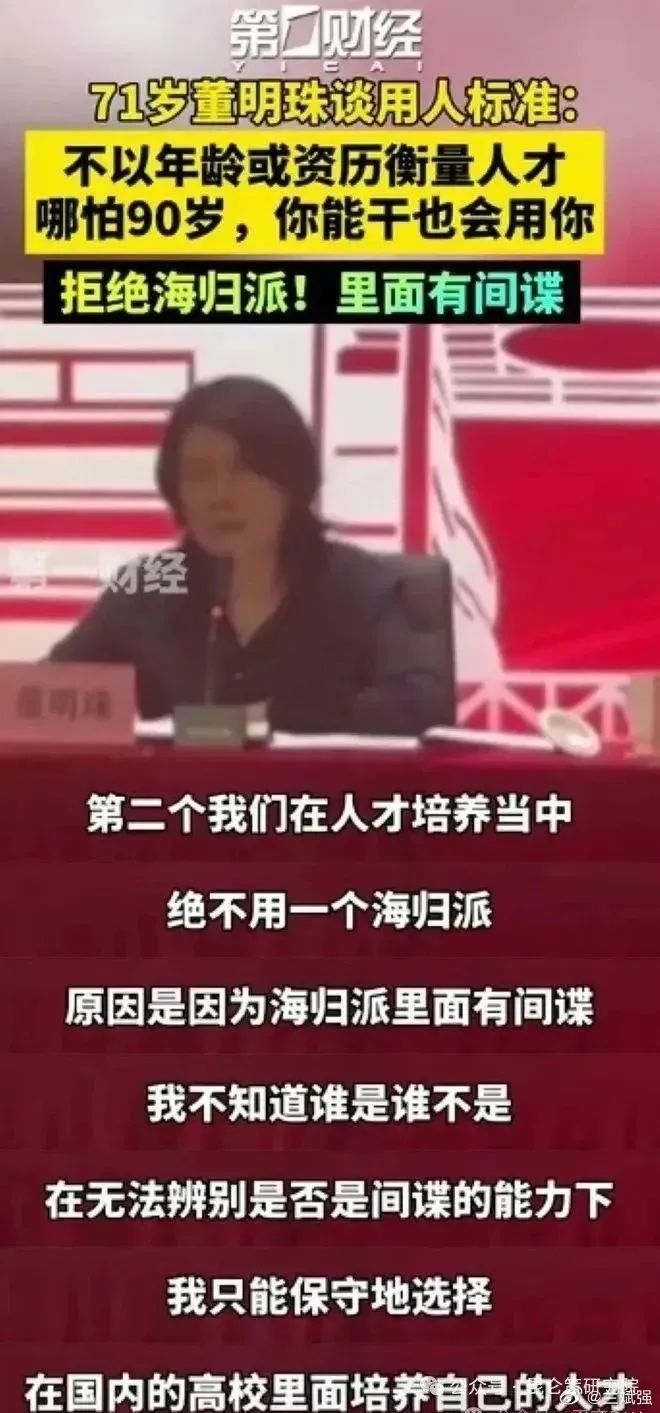 同时还流出了“不用海归派,怕海归派有间谍,不知道谁是谁不是”的发言,一开口就得罪了一个群体。