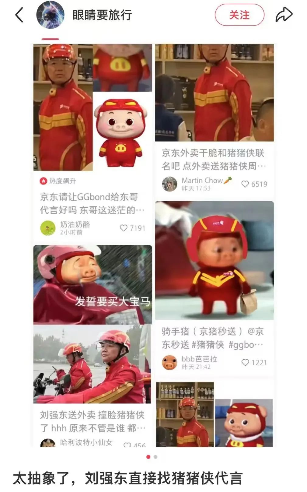 具体情况就是千亿总裁刘强东亲自下场送外卖,结果被网友发现撞脸童年男神——猪猪侠(GG Bond)