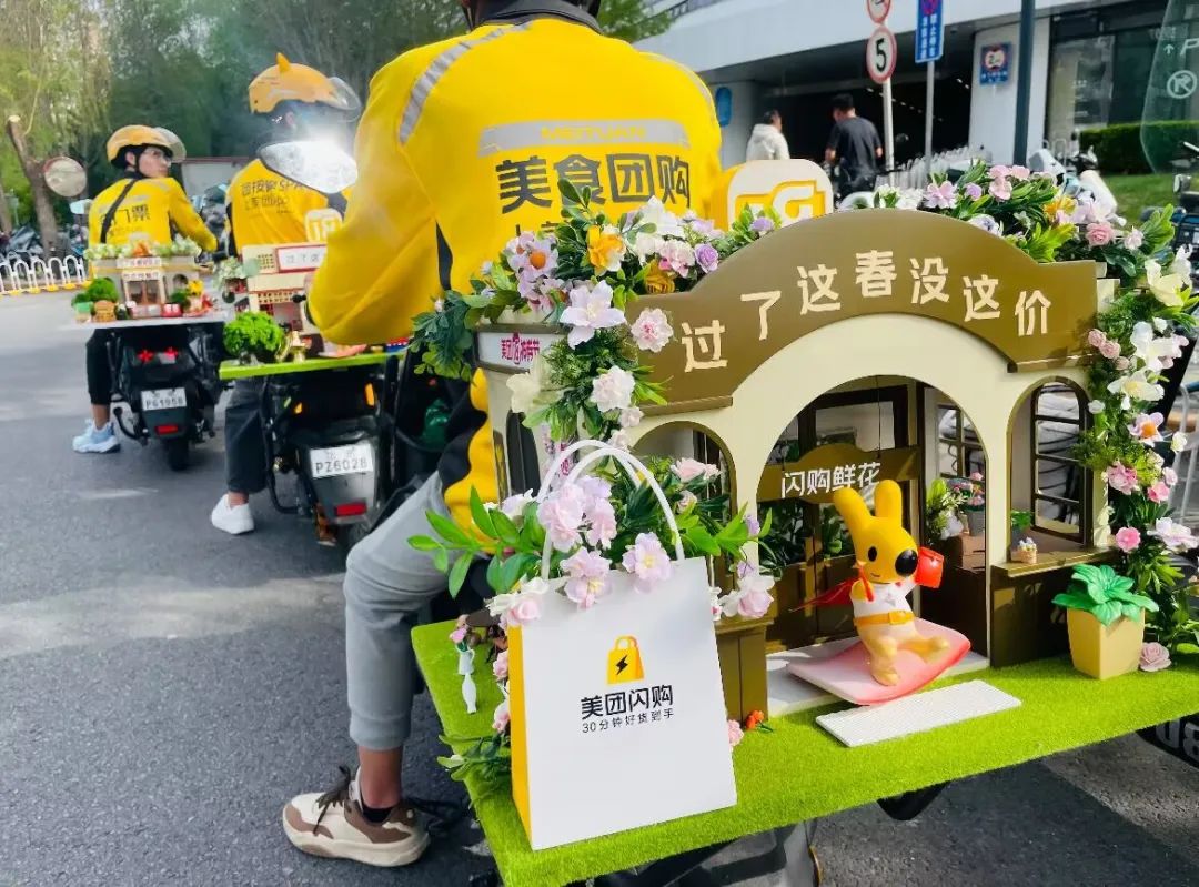 用巨物装置和炸裂视效,从感官层面向路过的人传递美团闪购“到手快、拦不住”的利益点。