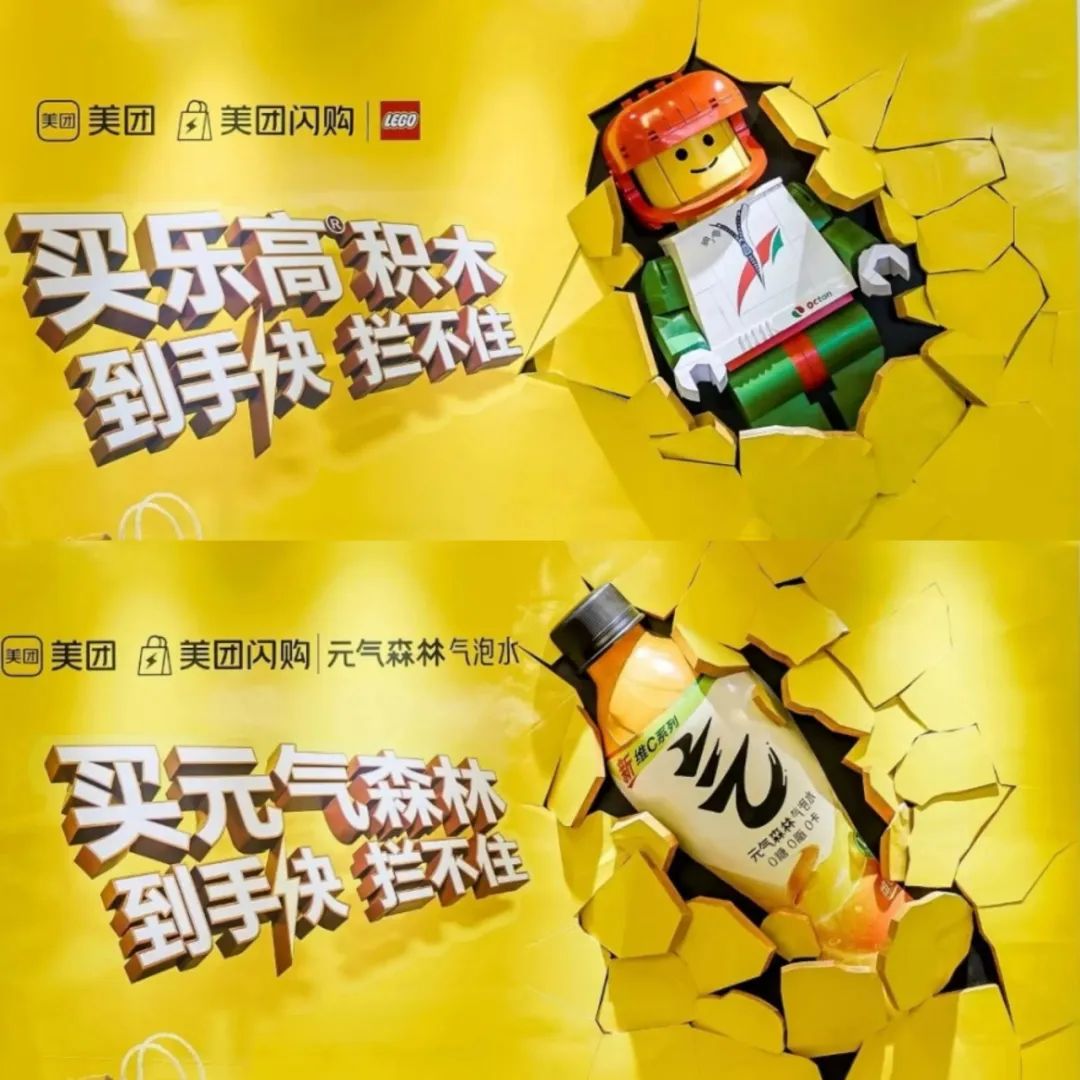 美团闪购则作为一个刚推出不久的新品牌,为了能够在平台零售战中打响第一枪,选择采取巨物装置+炸裂景观的方式,吸引受众注意、迅速在大众心中建立心智认知。