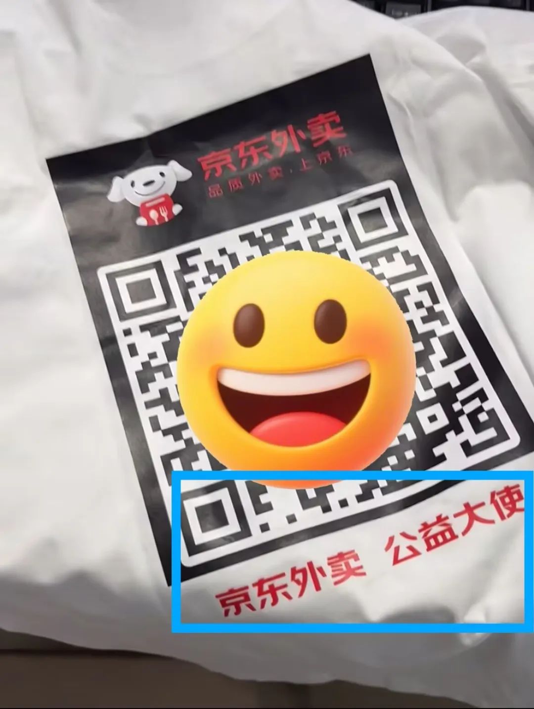 仔细一看,下面还有一行字“京东外卖,公益大使”