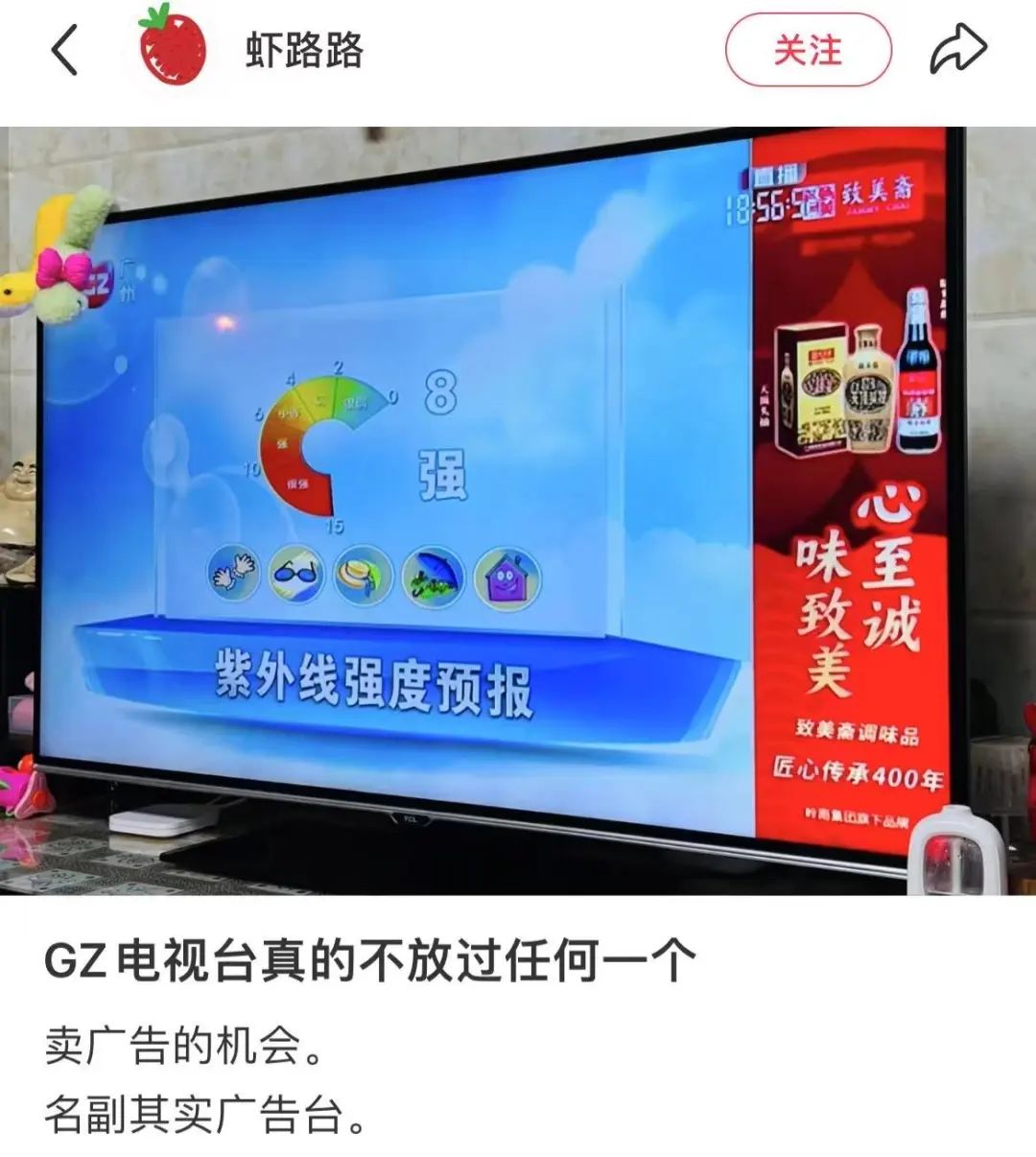 广州电视台甚至可以做到一边放着天气情况,一边放着调料广告。