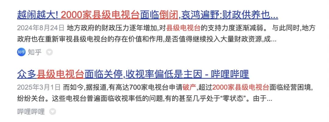 更夸张的是,据说整个2024年将有2000家县级电视台面临倒闭。