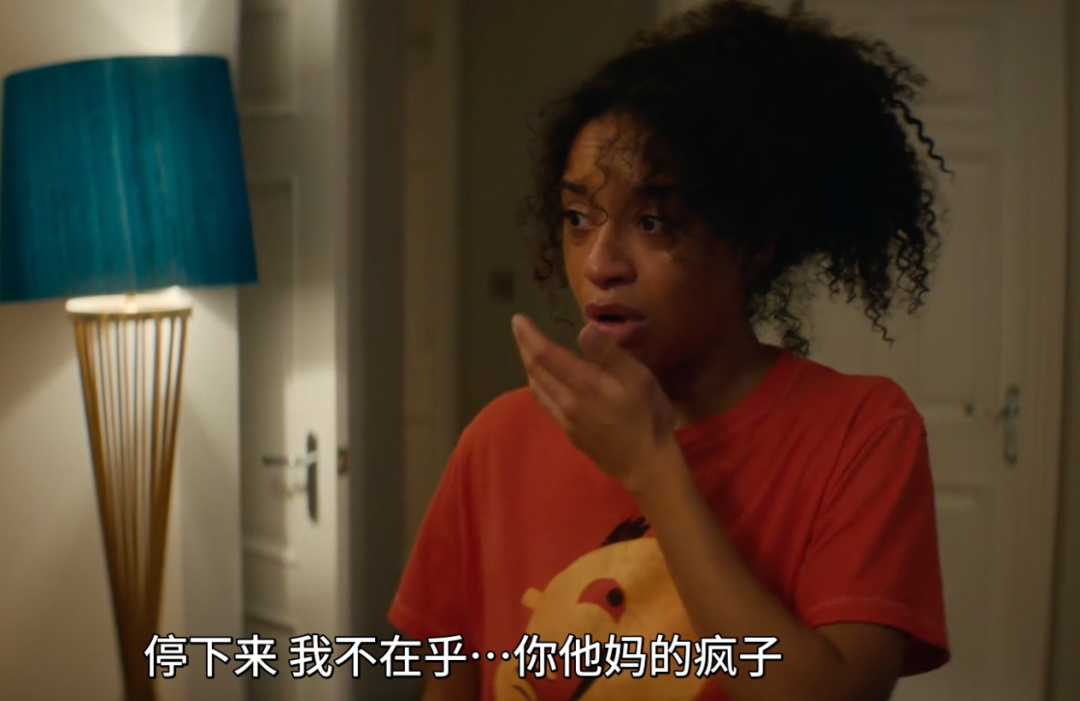 在第四季第七集《霸王龙的尖叫》中,女主坐在恐龙身上,吟出一句「举杯邀明月,对影成三人」,无独有偶,《黑镜》第七季第二集中,也有获得「超能力」的女主,突然用中文蹦出「你个疯子」的「尴尬」片段。这些原本对中国观众耳熟能详的词句,却因不合语境的语调、诡异的断句和毫无情感的表达,硬生生把说中文的我们,尬出了「三室一厅」。