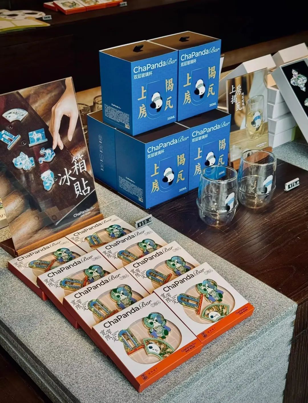 在成都的茶百道全球首家宽窄旗舰店内,还有一些以熊猫为主要元素的精美周边。