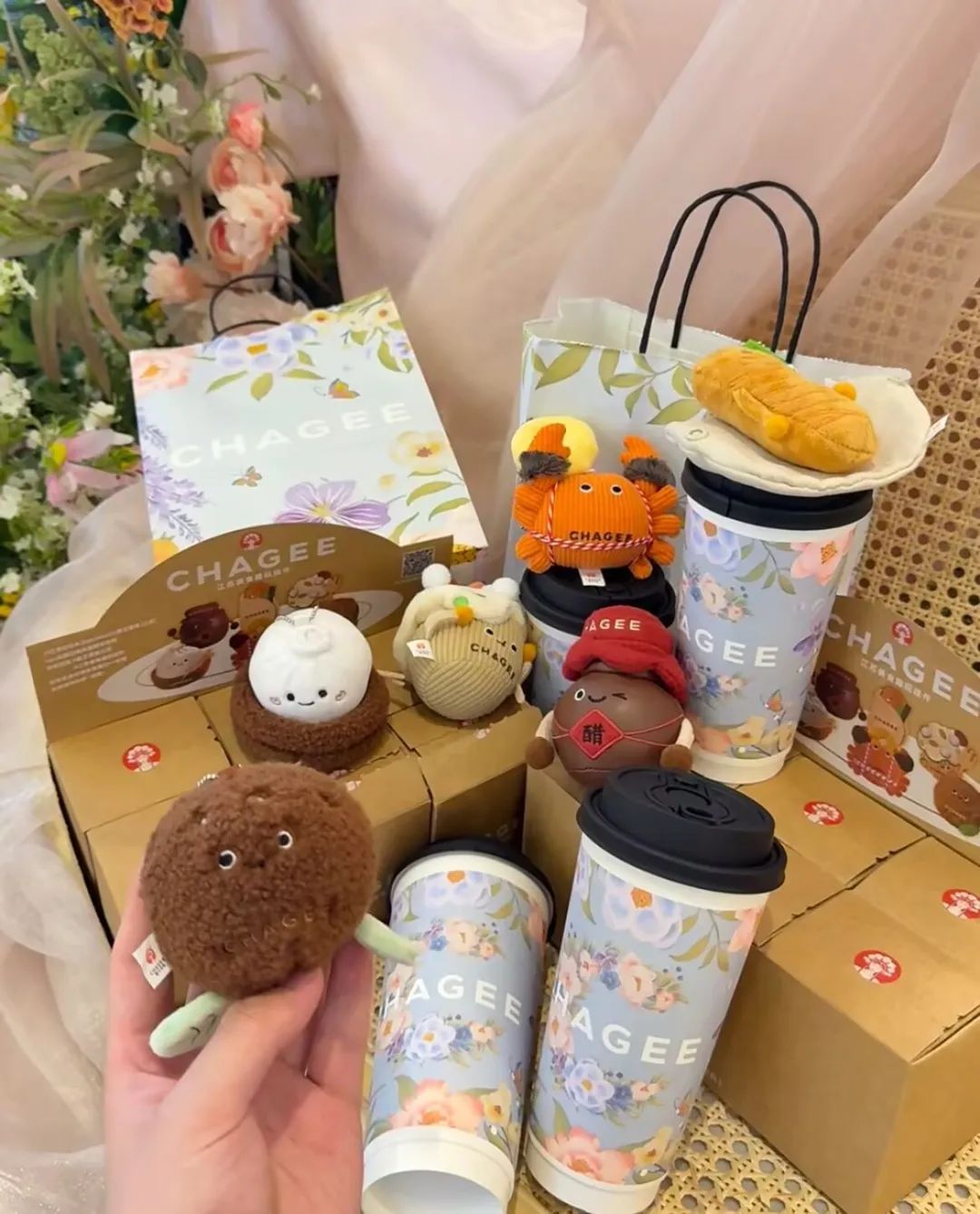 仔细一看这只小熊猫好眼熟,再结合毛绒杯身上的英文字母Chapanda,原来是茶百道的周边!