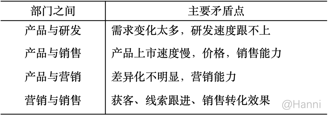 销售与产品:销售抱怨产品不好卖,性能不如对手,价格还高,产品上市太慢了。产品部门觉得销售根本不懂产品,只会卖低价,自己懒还怪产品不好…