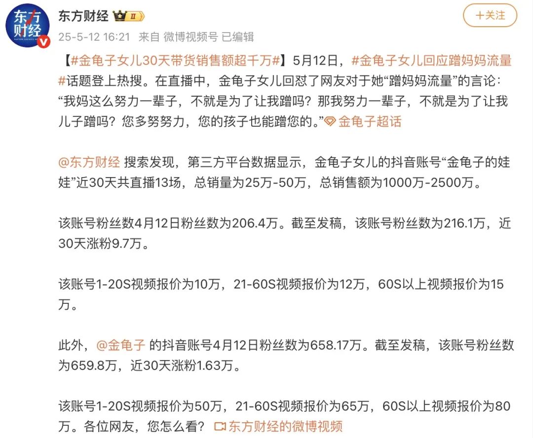 据媒体报道,王逸宸的抖音账号“金龟子的娃娃”近30天内直播13场,总销售额达1000万至2500万元,单场最高销售额突破2376万元。