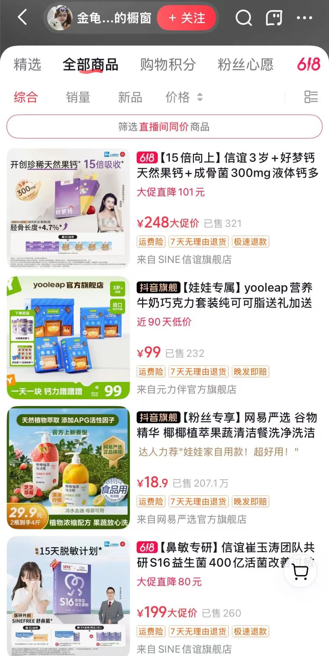 金龟子的少儿主持人属性,加之王逸宸自己的孩子金宝刚出生没多久,因此她的带货品类中以母婴品类为主,精准触达80、90后的父母群体。