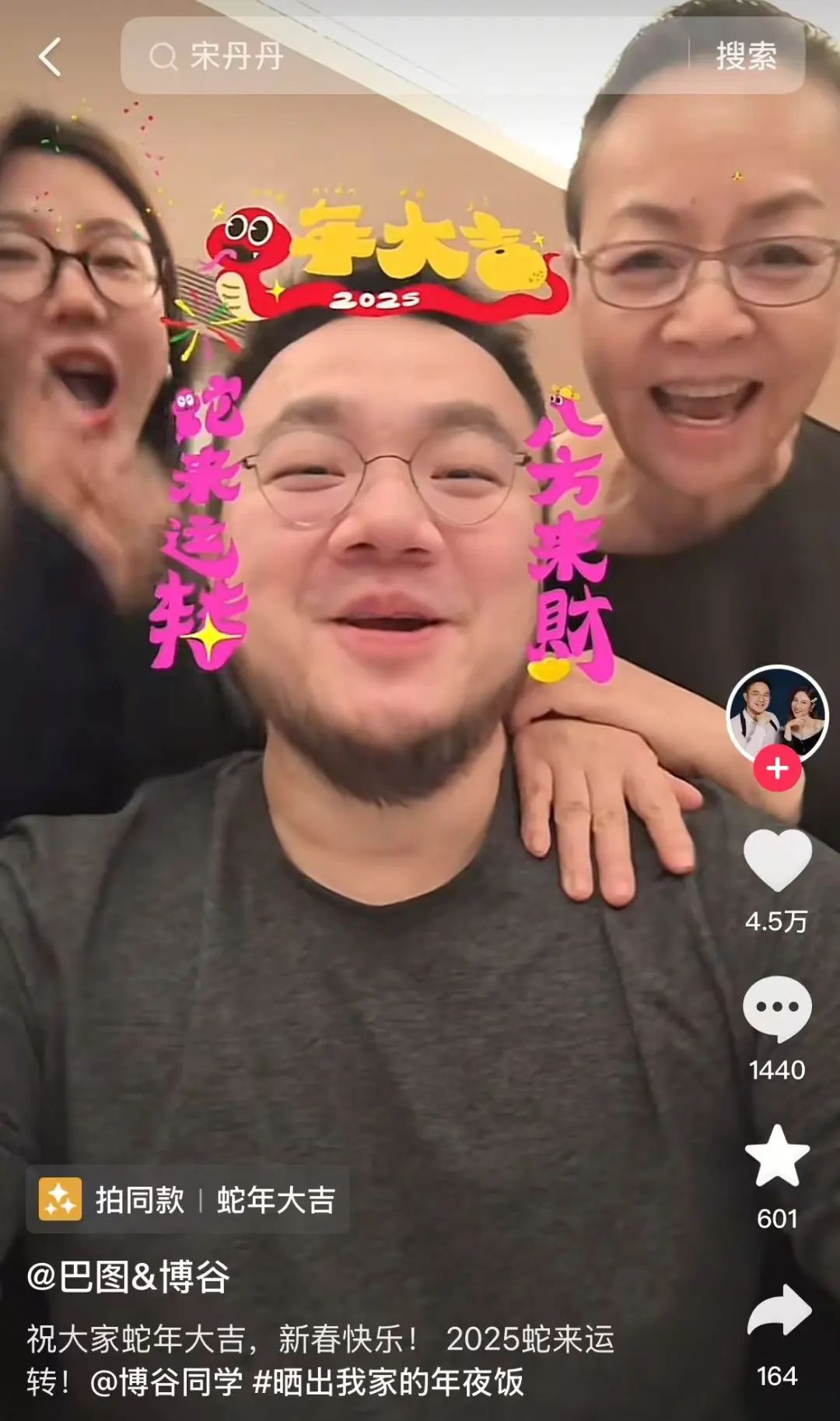宋丹丹以小品和家庭剧出圈,儿子巴图的抖音作品也主要以家庭趣事、夫妻日常为主,宋丹丹还会时不时地出现在巴图的作品中,将宋丹丹的国民形象延续,塑造温馨家庭的标签。