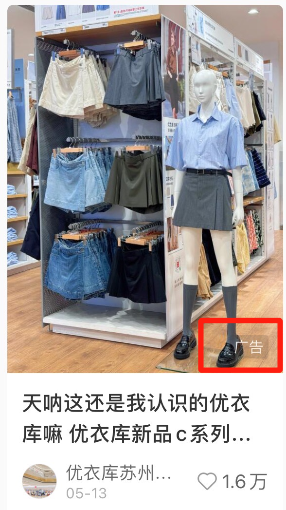最近圈主时常能刷到这样的帖子,服装风格乍一看特别像miumiu,仔细一看,却是优衣库店铺账号发布的广告内容。